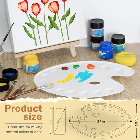 DUGATO Large Oval Paint Palettes (2 Pack, 14x10.5 inches) - 14-Well Plastic Mixing Trays for Acrylic, Oil, Watercolor & Gouache - Artist Supplies