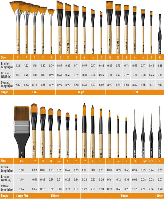 Nicpro 36pcs Paint Brush Set, Professional Paintbrushes with Palette Knife and Cloth Roll, Suitable for Artists and Beginners for Acrylic Painting, Oil, Watercolor, Gouache