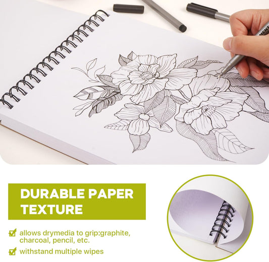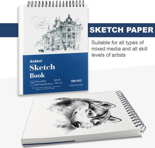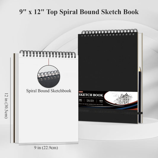 9" x 12" Sketch Book, Top Spiral Sketchbook Hardcover, 68lb (100gsm) Drawing Paper Pad & Sketch Paper, 1-Pack Sketch Pads for Drawing for Adults, Professional Art Supplies for Teens & Artist Gifts.