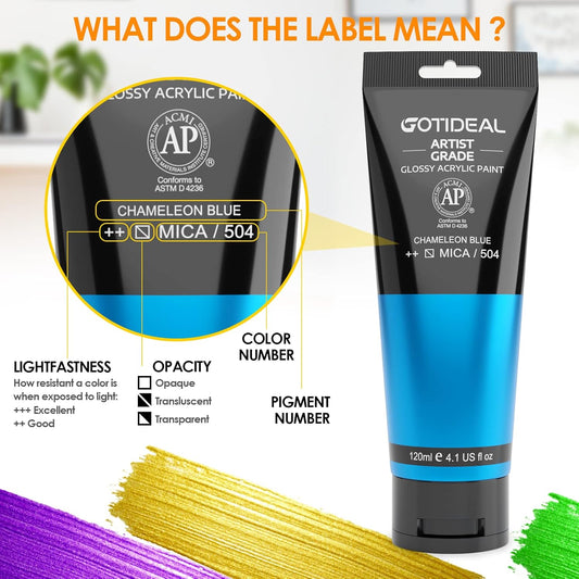 GOTIDEAL Iridescent Acrylic Paint Chameleon Blue Tubes(120ml, 4.1 oz) Non Toxic Non Fading,Rich Pigments for Painters, Adults & Kids, Ideal for Canvas Wood Clay Fabric Ceramic Craft Supplies