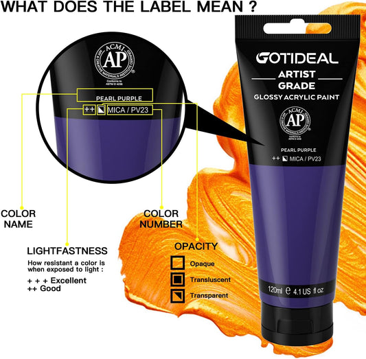 GOTIDEAL Metallic Acrylic Paint Pearl Purple Tubes(120ml, 4.1 oz) Non Toxic Non Fading,Rich Pigments for Painters, Adults & Kids, Ideal for Canvas Wood Clay Fabric Ceramic Craft Supplies