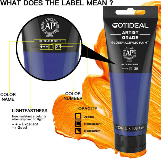 GOTIDEAL Acrylic Paint Phthalo Blue Tubes(120ml, 4.1 oz) Non Toxic Non Fading,Rich Pigments for Painters, Adults & Kids, Ideal for Canvas Wood Clay Fabric Ceramic Craft Supplies (Phthalo Blue)