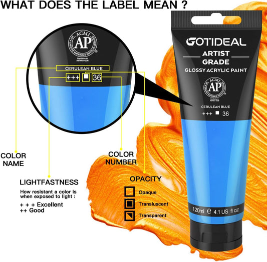 GOTIDEAL Acrylic Paint Cerulean Blue Tubes(120ml, 4.1 oz) Non Toxic Non Fading,Rich Pigments for Painters, Adults & Kids, Ideal for Canvas Wood Clay Fabric Ceramic Craft Supplies (Cerulean Blue)