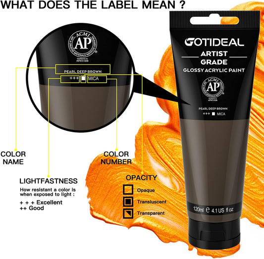 GOTIDEAL Metallic Acrylic Paint Pearl Deep Brown Tubes(120ml, 4.1 oz) Non Toxic Non Fading,Rich Pigments for Painters, Adults & Kids, Ideal for Canvas Wood Clay Fabric Ceramic Craft Supplies