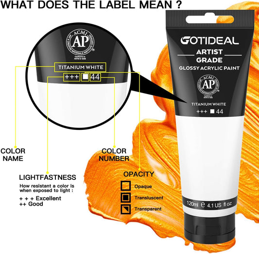 GOTIDEAL Acrylic Paint Titanium White Tubes(120ml, 4.1 oz) Non Toxic Non Fading,Rich Pigments for Painters, Adults & Kids, Ideal for Canvas Wood Clay Fabric Ceramic Craft Supplies (Titanium White)