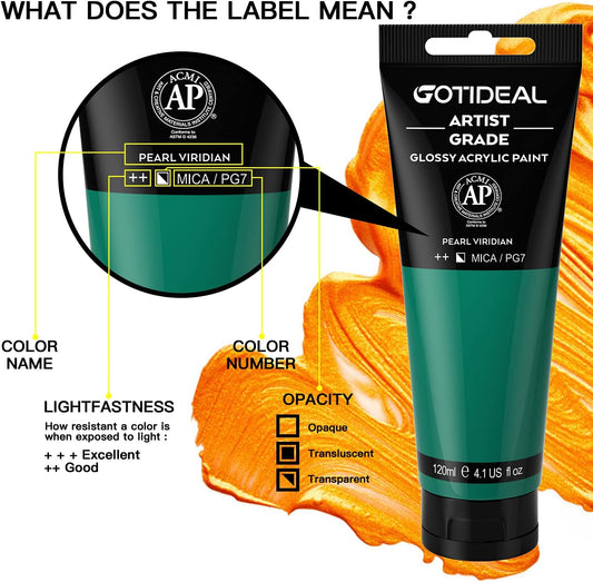 GOTIDEAL Iridescent Acrylic Paint Chameleon Green Tubes(120ml, 4.1 oz) Non Toxic Non Fading,Rich Pigments for Painters, Adults & Kids, Ideal for Canvas Wood Clay Fabric Ceramic Craft Supplies