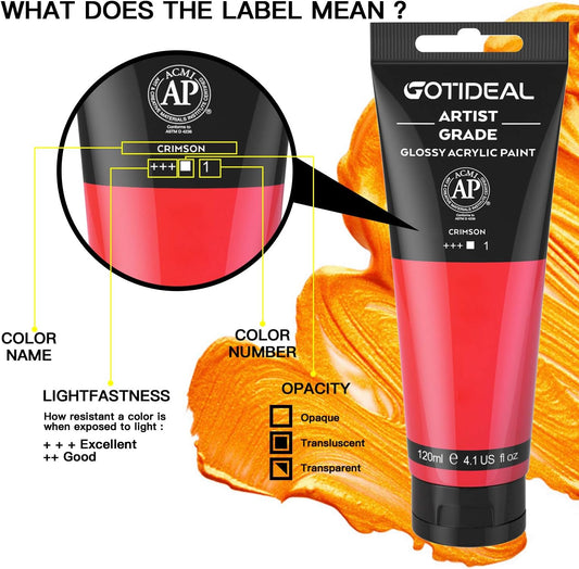 GOTIDEAL Acrylic Paint Crimson Tubes(120ml, 4.1 oz) Non Toxic Non Fading,Rich Pigments for Painters, Adults & Kids, Ideal for Canvas Wood Clay Fabric Ceramic Craft Supplies (Crimson)