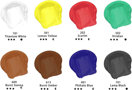 Artecho Professional Acrylic Paint Set, 8 Primary Colors (120ml / 4.05oz) Tubes, Art Craft Paints for Canvas, Rock, Stone, Wood, Fabric, Art Supplies
