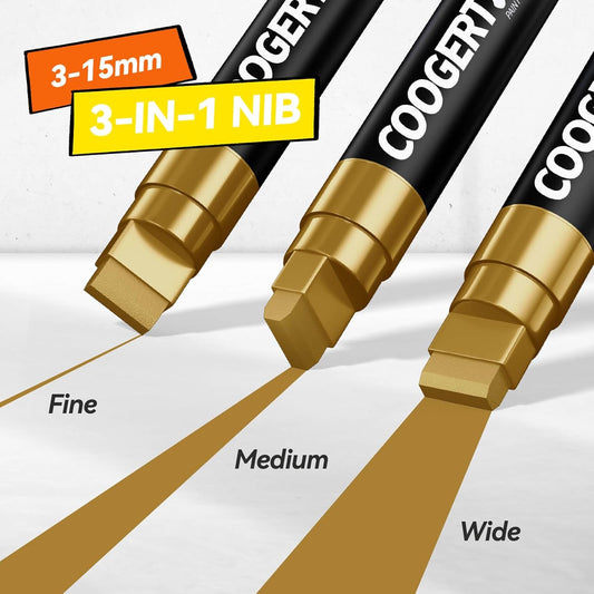 3Pcs Gold Jumbo Poster Markers, 15MM Thick Permanent Acrylic Graffiti Markers, Wide Tip Paint Marker for Canvas, Posters Board, Fabric, Window, Glass, Wood, Teachers,Banner painting supplies