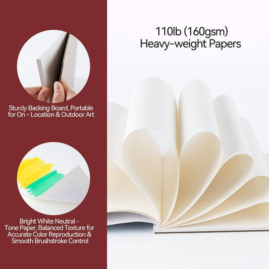 TRANSON Artist Mix Media Sketchbook Marker Pad, 5.8”x8.3” 80 Sheets A5 Art Papers, 80lb/120gsm for Painting, Drawing and Sketching