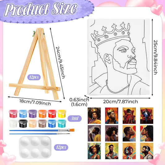 Cholemy 36 Pcs Paint and Sip Kit for Adults 8''x10'' Pre Drawn Canvas for Painting DIY Afro Acrylic Painting Kit Wood Easel Brushes Date Night Bulk for Christmas Party Gifts(Black Women)