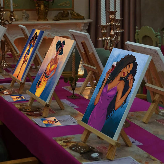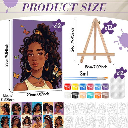 Cholemy 36 Pcs Paint and Sip Kit for Adults 8''x10'' Pre Drawn Canvas for Painting DIY Afro Acrylic Painting Kit Wood Easel Brushes Date Night Bulk for Christmas Party Gifts(Fashion Women)