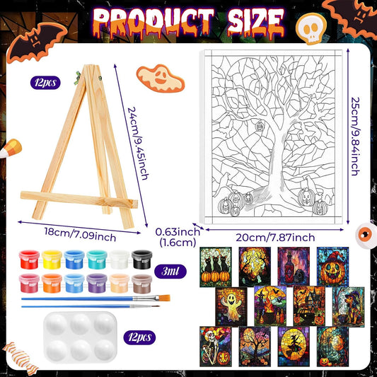 Zhanmai 12 Pack Pre Drawn Canvas for Painting Sip and Paint Kit 8" x 10" Paint Party Set Canvas Painting Pre Printed Canvases for Party Favor DIY Virtual Adult's Date Night (Vivid Ghost)