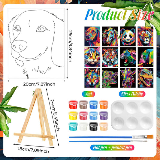Zhanmai 12 Pack Pre Drawn Canvas for Painting Sip and Paint Kit 8 x 10 Paint Party Set Canvas Painting Pre Printed Canvases for Party Favor DIY Virtual Adult's Date Night(Colorful Animals)
