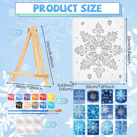 Zhanmai 12 Pack Pre Drawn Canvas for Painting Sip and Paint Kit 8" x 10" Paint Party Set Canvas Painting Pre Printed Canvases for Party Favor DIY Virtual Adult's Date Night(Winter Snowflake)