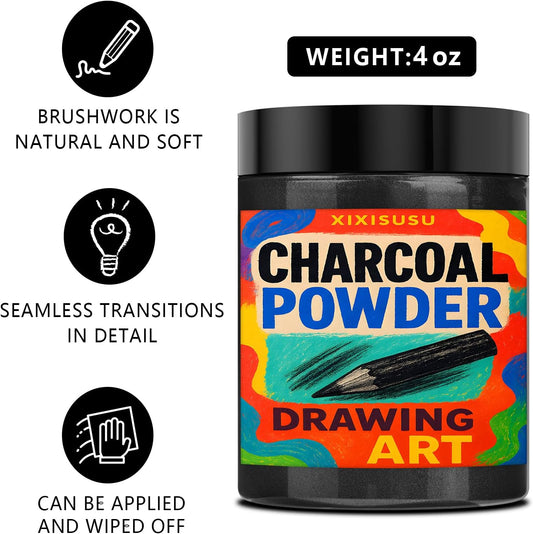 Premium Charcoal Powder for Drawing and Art, Drawing Charcoal for Sketching, Shading, Blending with Beginners & Pro Artists - 4 Ounces