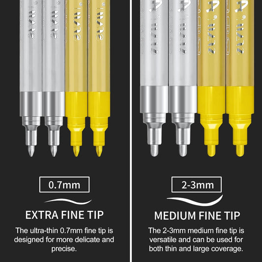 SFAIH Gold & Silver Acrylic Paint Markers - 8 Pack 2-3MM Medium Tip & 0.7MM Extra Fine Paint Pens for Rock Painting, Wood, Metal, Fabric, Plastic, Canvas, Glass, Ceramic, Diy Crafts