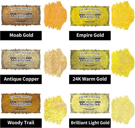 CSY art gallery Metallic Acrylic Paint Ink-Water Resistant Drawing Inks Set-24K Gold Alcohol Ink-Mica Paint for Resin, Rock,Markers Refill,Wood,Crafts (Fallen Leaves Starlight Set)