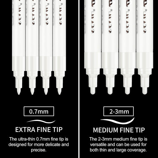 SFAIH Acrylic White Paint Pens - 8 Pack 2-3MM Medium Tip & 0.7MM Extra Fine Paint Marker for Rock Painting, Wood, Metal, Fabric, Plastic, Canvas, Glass, Ceramic, Diy Crafts, White Out Pen