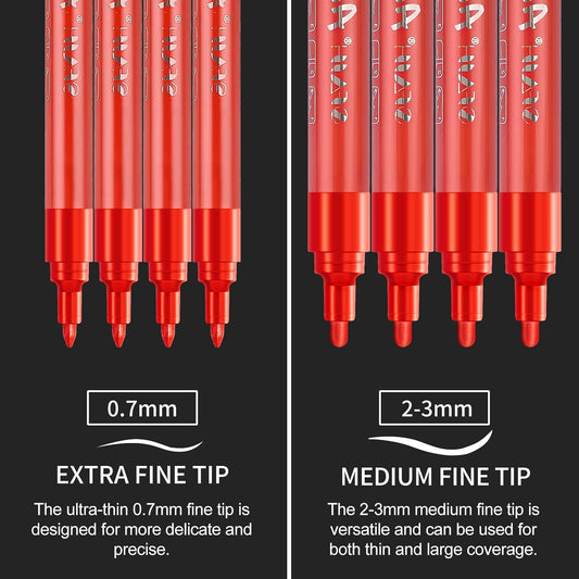 SFAIH Acrylic Red Paint Pens - 8 Pack 2-3MM Medium Tip & 0.7MM Extra Fine White Paint Marker for Rock Painting, Wood, Metal, Fabric, Canvas, Glass, Ceramic, Diy Crafts