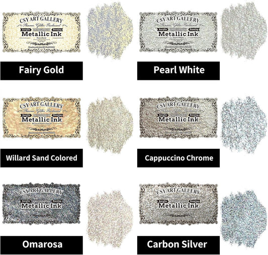 CSY art gallery Metallic -Pearlescent-Glitter Acrylic Ink -Shining Calligraphy Paint -Silver, Rose Gold Rich Pigments Perfect for Artists, Canvas, Rocks, Wood, Fabric, Ceramic (Galaxy Starlight Set)