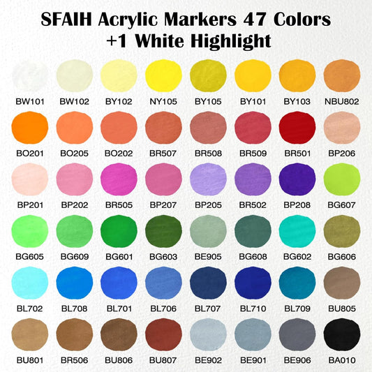 SFAIH Halloween Gifts Acrylic Paint Markers, 48 Colors Dual Tips Acrylic Brush Markers With Chisel Tip, Automatic Ink Control, Ultra-High Coverage, No Bleed Ink, Art Supplies for Rock, Canvas, Fabric