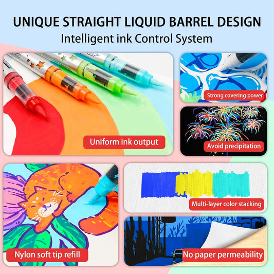 Acrylic Paint Markers Paint Pens, 36 Colors Dual Tip Direct Liquid Acrylic Markers with Automatic Ink Control System, Fine & Brush Tip Art Supplies for Rock Painting, Wood, Stone, Fabrics, DIY Craft