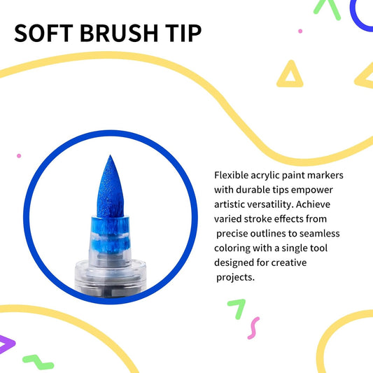 POMAC Acrylic Paint Markers Pens 12 Assorted Colors, Water-Based Paint Markers Brush Tip, No-Bleed Liquid Acrylic Marker Pens Waterproof for Fabric, Canvas, Rock, Glass, Wood, DIY Crafts, Art Supplies