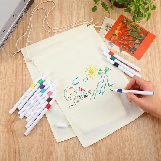 Mindsoft 48 Pcs Blank Canvas Banner Bulk Color Your Own Vertical Banner with Hanger with 12 Colorful Fabric Markers Pens Wall Display Banners for DIY 24 Students Paint Art Classroom School Camp Party