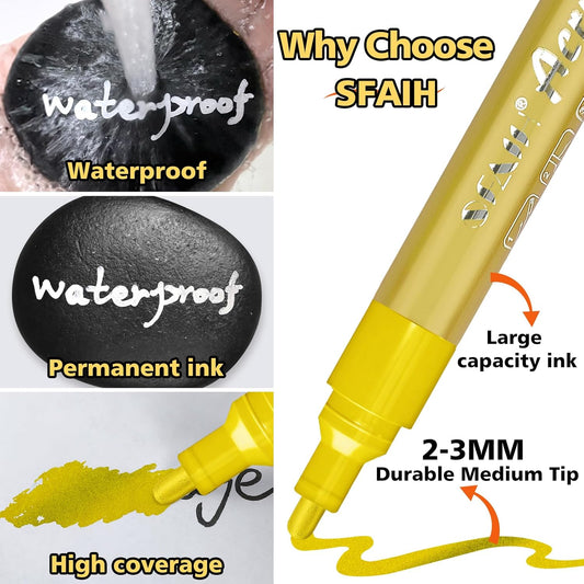 SFAIH Paint Markers Pens - 4 Colors 8 Pack Ultra-High Coverage Acrylic Paint Pens for Rock, Paper, Wood, Fabric, Glass, Metal, Ceramic, Painting, DIY Art Projects, Crafts, Large Capacity Permanent Ink