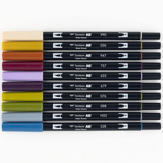 Tombow 56186 Dual Brush Pen Art Markers, Muted, 10-Pack. Blendable, Brush and Fine Tip Markers