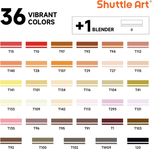 Shuttle Art 36 Colors Skin Tone&Hair Art Markers, Dual Tip Alcohol Based Marker Pen Set Contains 1 Blender 1 Carrying Case 1 Marker Pad Perfect for Kids & Adults Portrait,Comic, Anime, Manga
