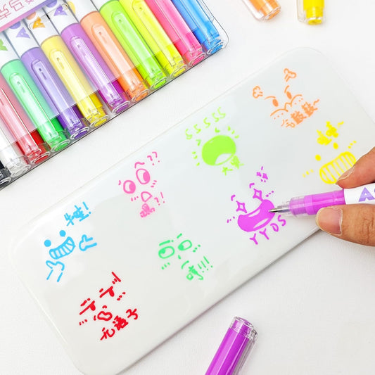 kander Direct Liquid Highlighter Acrylic Marker, 12 Colors Gel Pens with Bullet Tip, Strong Coverage, Large Ink Capacity, Multi-Purpose Paint Pens for Rock Painting, Crafts, DIY, Art Supplies