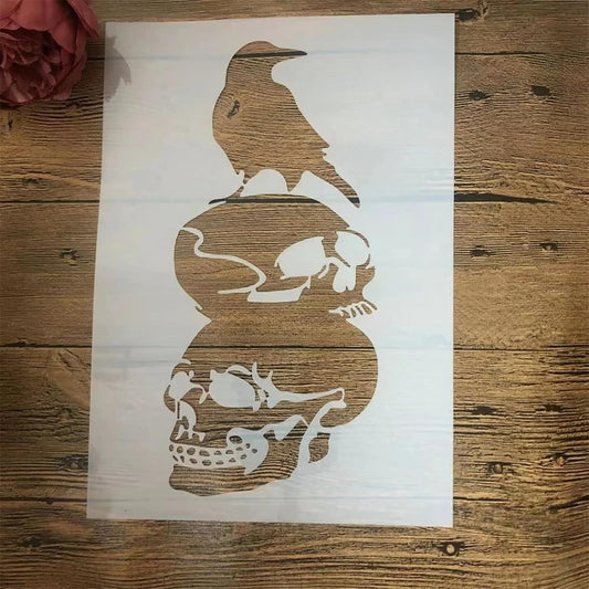 TIAMECH A4 Reusable Halloween Crow Skull Stencil for Painting - Horror Ghost Atmosphere Layering Template, DIY Wall Art, Wood Furniture, Scrapbook & Crafts (8.3x11.7inch)