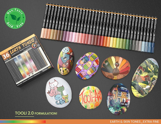 36 Acrylic Paint Pens Skin and Natural Earth Tone Marker Set For Rock Painting, Canvas, Mugs, Glass, Plastic, Wood, Metal, Fabric, Scrapbooking, Most Surfaces. Quick Drying Waterbased (EXTRA FINE)