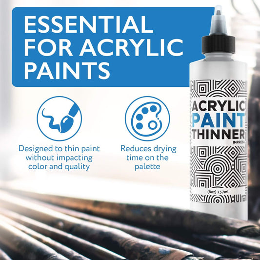 IMPRESA Acrylic Paint Thinner & Mixing Medium - 8 fl oz - Paint Thinner for Acrylic Painting – Slow-Drying Retarder & Flow Improver – Odorless, Water-Based, Non-Curdle Formula