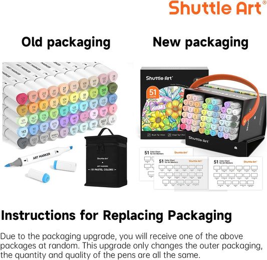 Shuttle Art Alcohol Markers Brush tip, Dual Tip Brush & Chisel Tip Art Marker Set, 50 Colors plus 1 Blender Permanent Marker Pens with Case Perfect for Illustration Students Adults Coloring