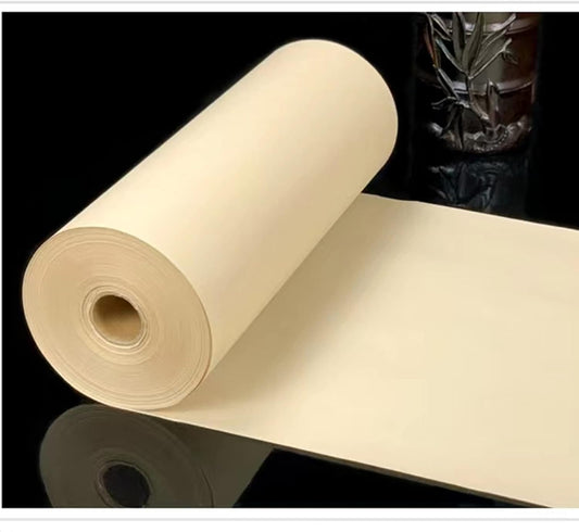 MEGREZ Roll Pack Xuan Paper Thicken Calligraphy Xuan Paper Sumi Paper for Practice Chinese Japanese, 35cm x 100m(13.8in x 328ft), Half Raw Ripe Xuan Paper, White