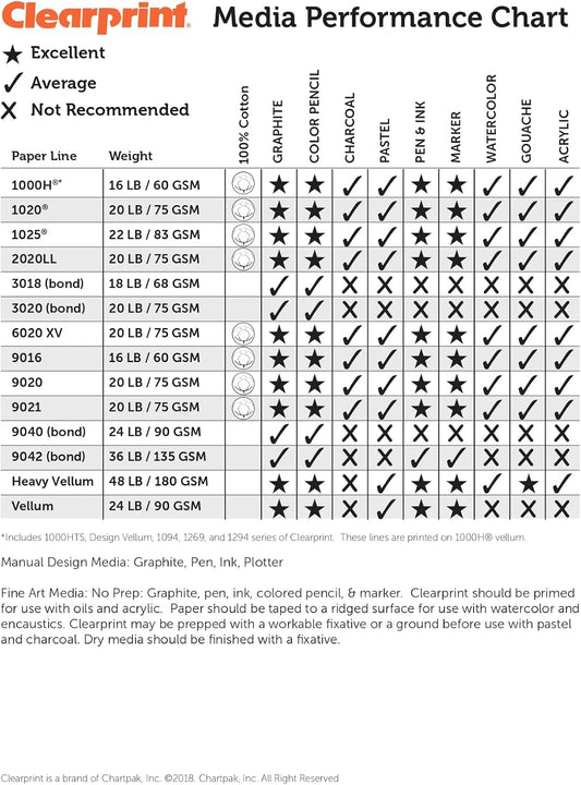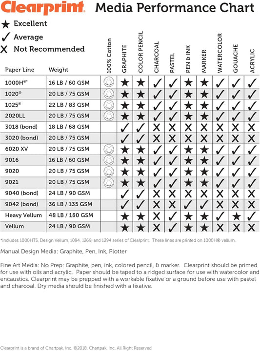 Clearprint 18" x 24" 1000H Design Vellum Sheets with Engineer Title Block, 16 lb., 100% Cotton, 10 Sheets Per Pack, 1 Each