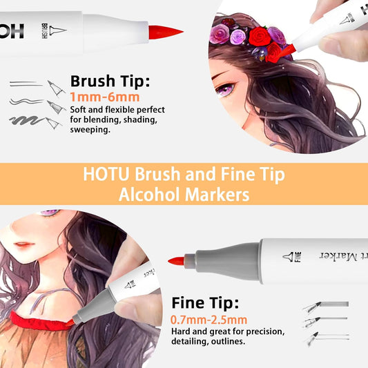 Alcohol Markers Brush and Fine Tip 50 Colors Dual Tips Art Marker Set Alcohol-based Sketch Pens with Carrying Case,Non-Bleeding Pad for Art Enthusiast Adults Coloring Illustration