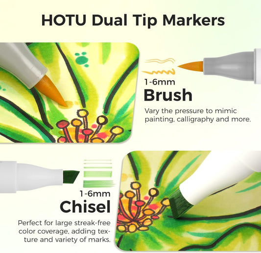 Alcohol Markers Brush Tip-120 Colors Dual Tip Brush & Chisel Art Marker Set for Artist Coloring Illustration with Line Art for Coloring, Colorless Blender, Swatch Card, Anti-bleed Pad