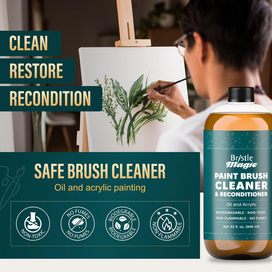 Oil Paint Brush Cleaner and Restorer-Paintbrush Cleaner for Acrylic, Oil, and Glass Paints-Biodegradable, Non-Toxic, Odorless, Eco-Friendly, Quick-Clean Formula Paint Remover (32 Fl Oz)