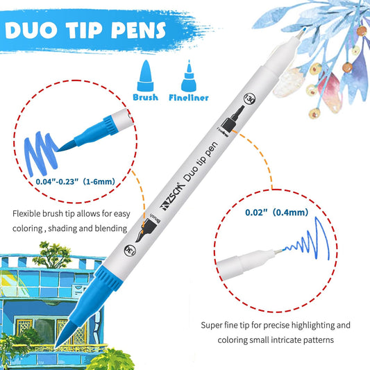 ZSCM 100 Colors Duo Tip Brush Markers Art Pen Set, Artist Fine and Brush Tip Colored Pens, for Adult Coloring Books Christmas Cards Drawing, Note taking Lettering Calligraphy Journaling