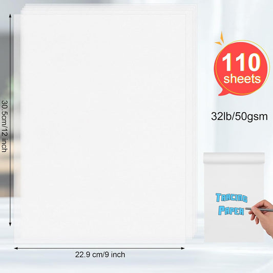 110 Sheets Tracing Paper for Drawing, 9”x12” Trace Paper, Translucent Vellum Paper Tracing Paper Pad, Tracing Pad for Sketching, Preliminary Drawing, Overlaying Images Tracing