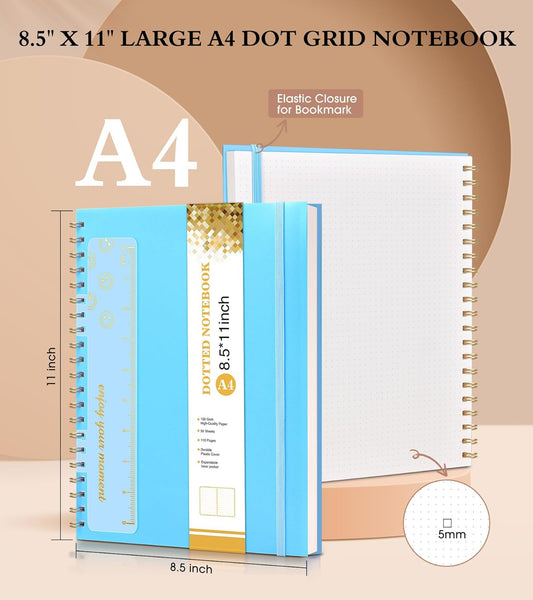 Dotted Notebook, Spiral Notebook Journal 8.5” x 11”, A4 Large Dot Grid Notebooks for Women Men, 100 GSM Dotted Paper, Plastic Hardcover Spiral Bullet Journals for Work School Sketching, Blue