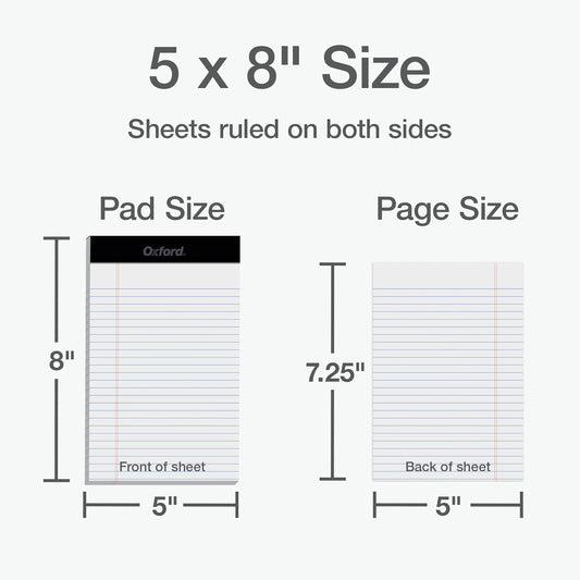 Oxford 5 x 8 Legal Pads, 12 Pack, Narrow Ruled, White Paper, 50 Sheets Per Writing Pad, Made in the USA (74019)