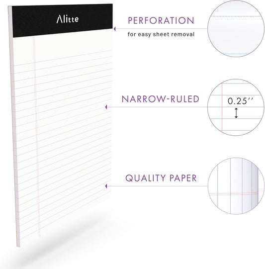 Legal Notepads 5x8, Pack of 6 - Perforated Narrow Ruled Writing Pad - Premium Thick Paper, No Ink Bleeding - Blank Legal Pads For Home, Office, School, Business - 50 Sheets Per Notebook