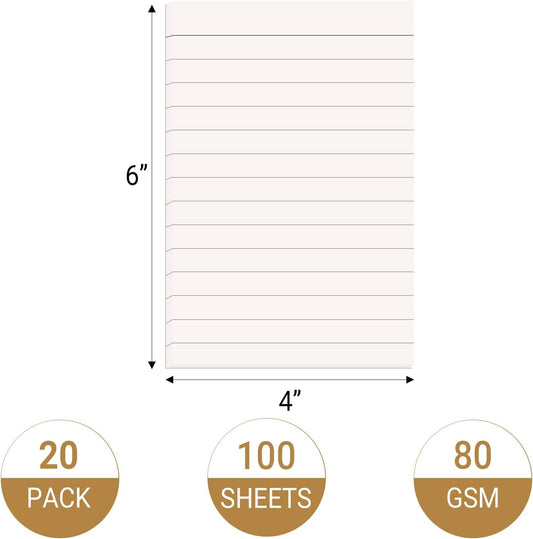20 Pack Lined Memo Pads 4”x6” Note Pads - 100 Sheets Each Lined Paper Notepad- Small Memo Scratch Pad Writing Pads(Double Sided Printed)