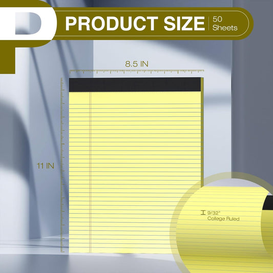 12 Pack Legal Pads 8.5" x 11" College Ruled Yellow Note Pads 8.5 x 11 Inch Micro-Perforated Notepad 600 Sheets in Total Lined Writing Paper Notebook for Office, School Supplies & To-Do Lists