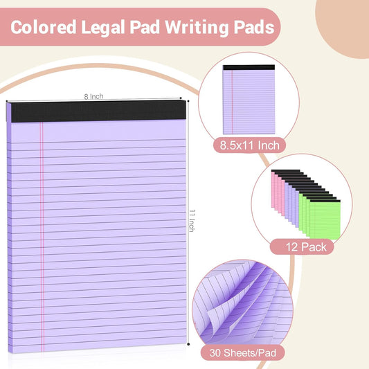 Legal Pads 8.5 x 11 Colored Notepad, 12 Pack Wide Ruled Lined Paper, Micro Perforated Writing Pads, 30 Sheet/Note Pads, Pink Legal Pad 8.5 x 11 Notebook Paper Tablet for School